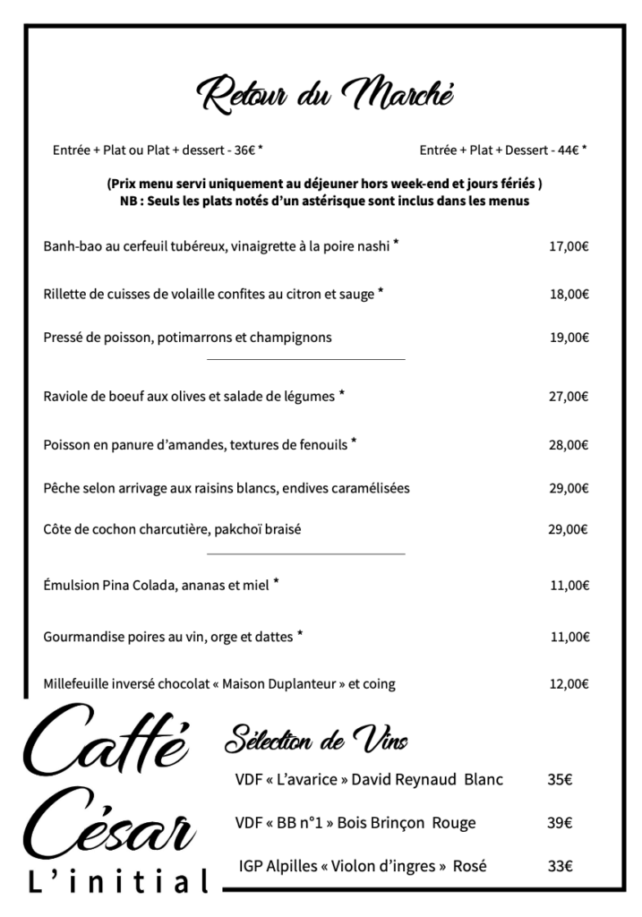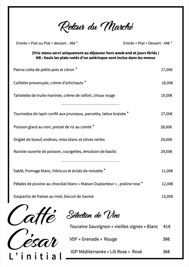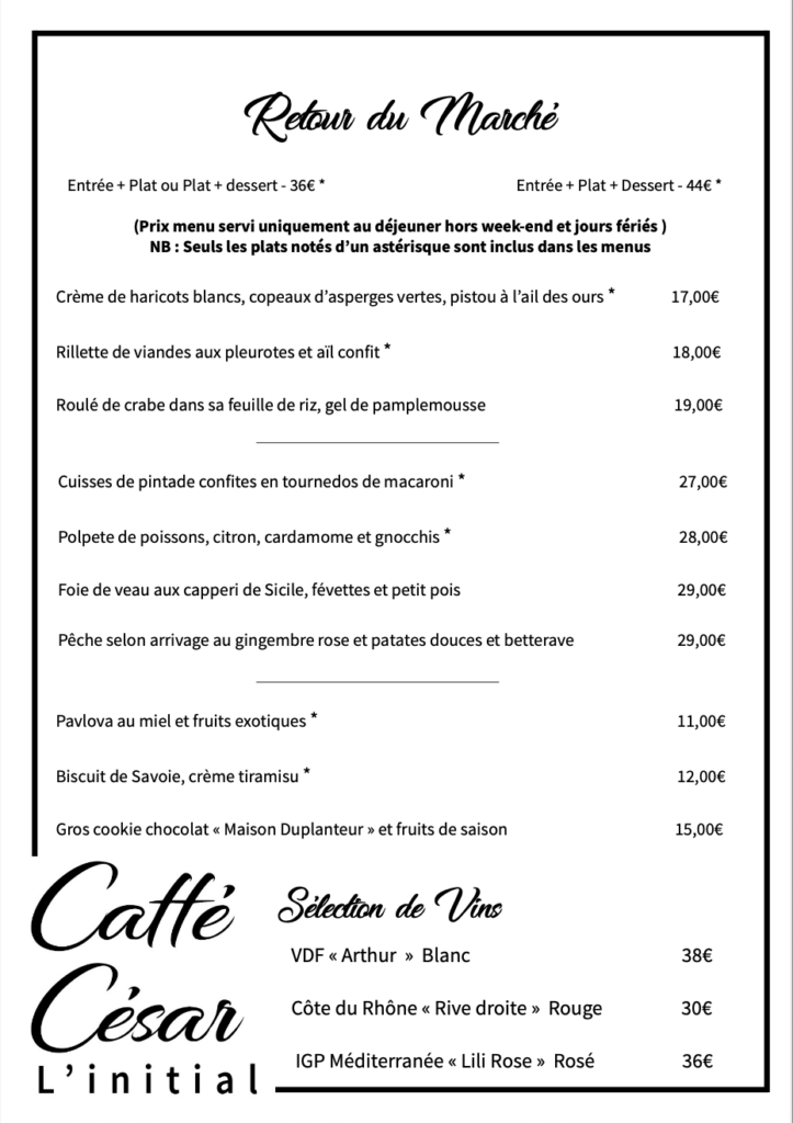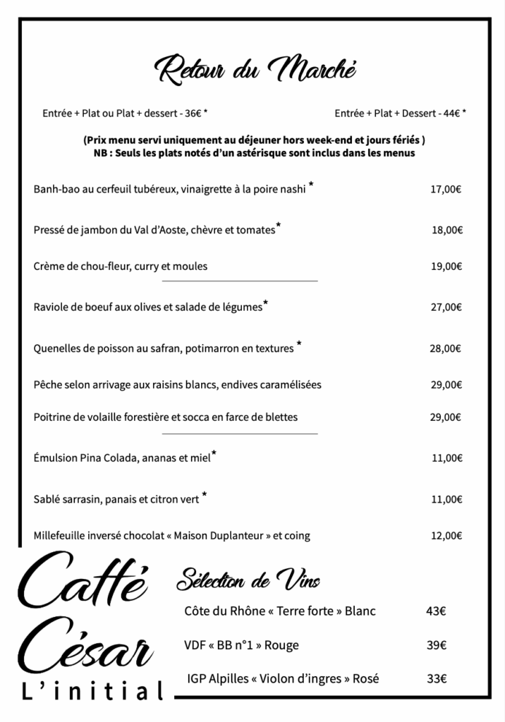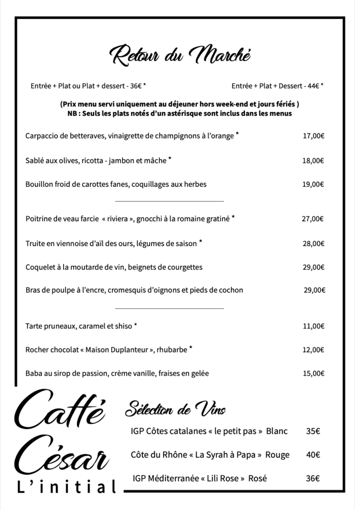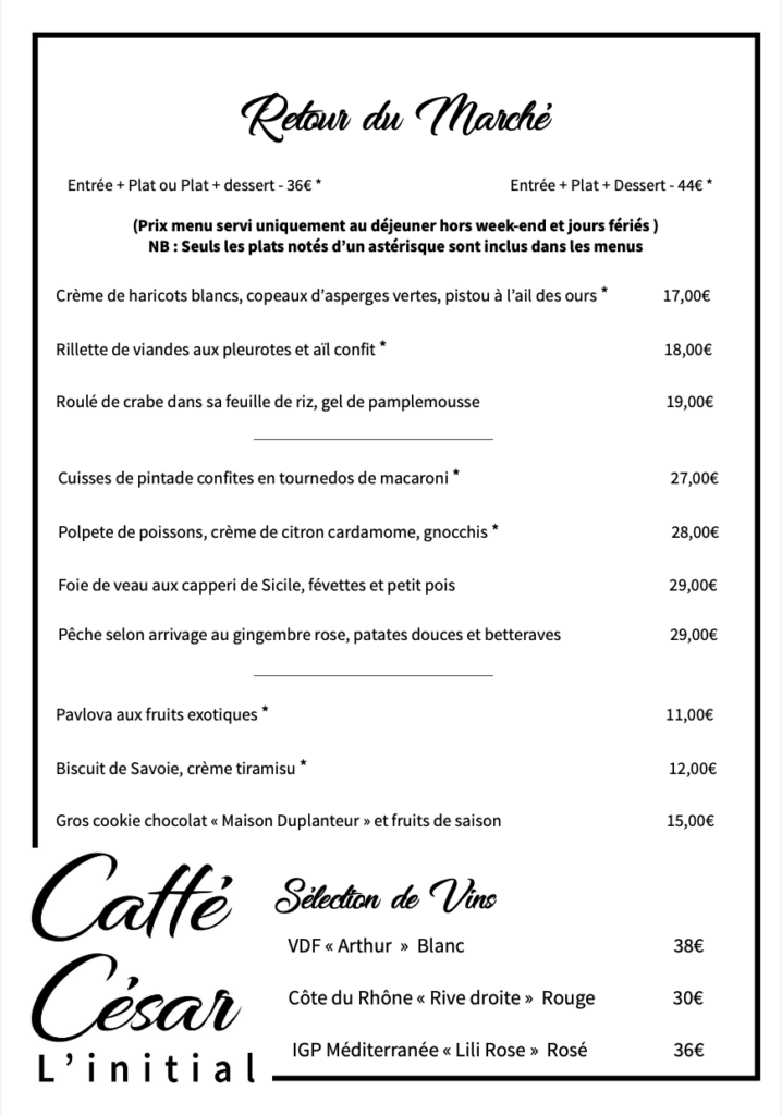 Le Caffé César – Restaurant l’Initial vous accueille du Jeudi au Lundi, midi et soir.