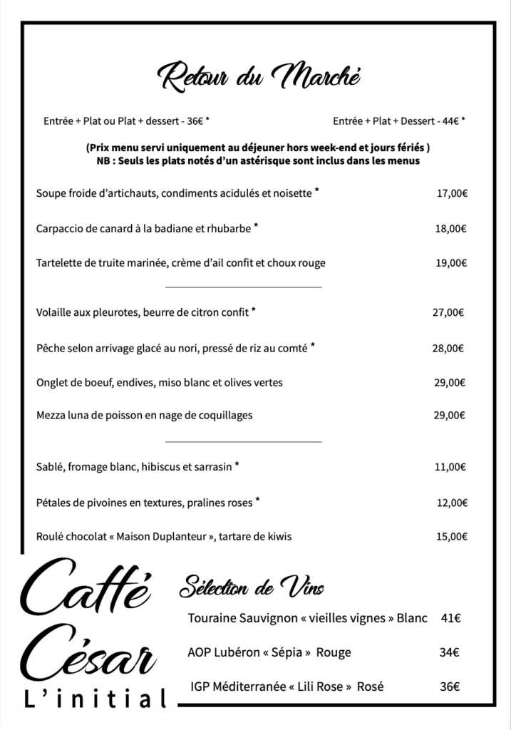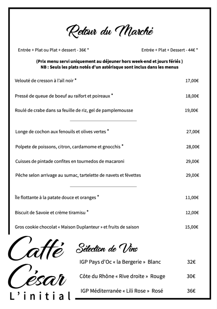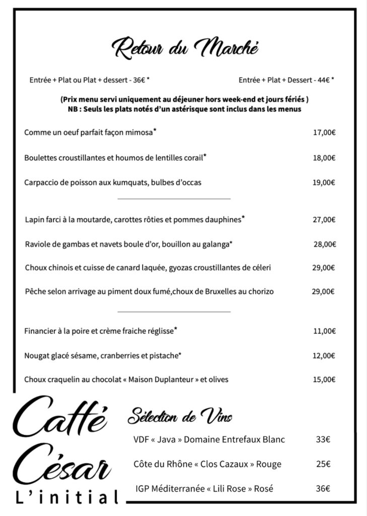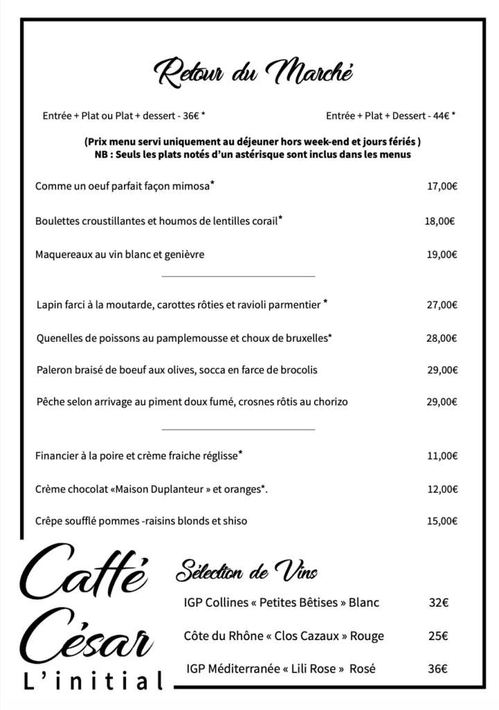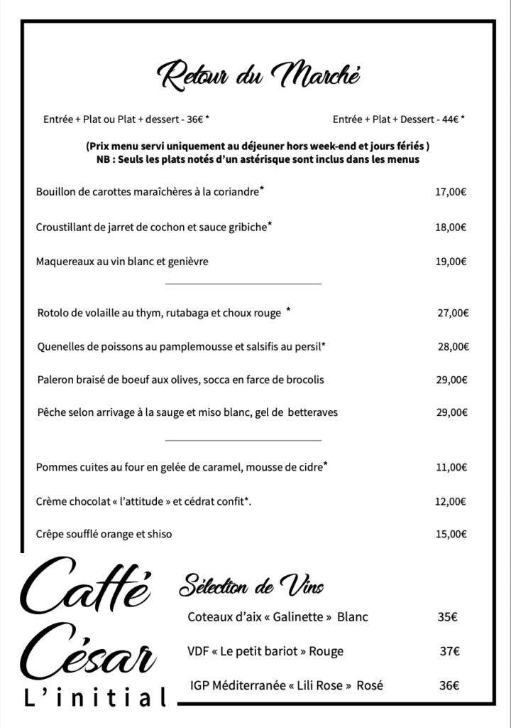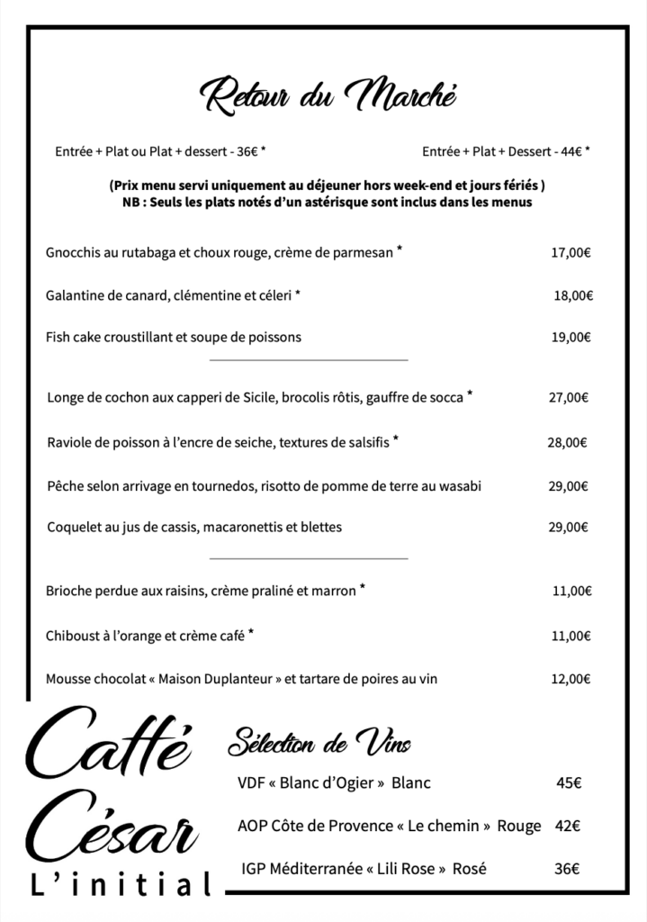 Le Caffé César – Restaurant l’Initial vous accueille du Jeudi au Lundi, midi et soir.